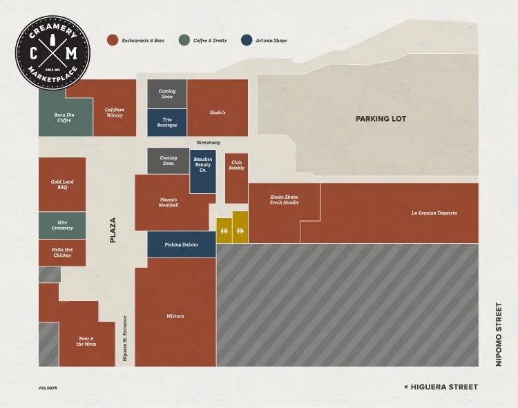 Today, the Creamery Marketplace invites locals and visitors alike to explore its public-yet-private dining, shopping and gathering space, folded back off Higuera Street in downtown San Luis Obispo.
